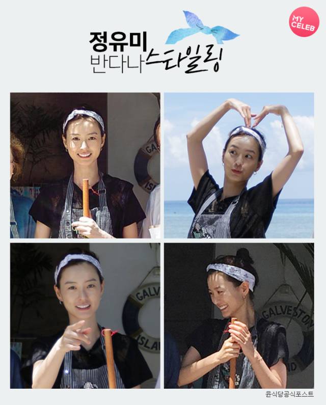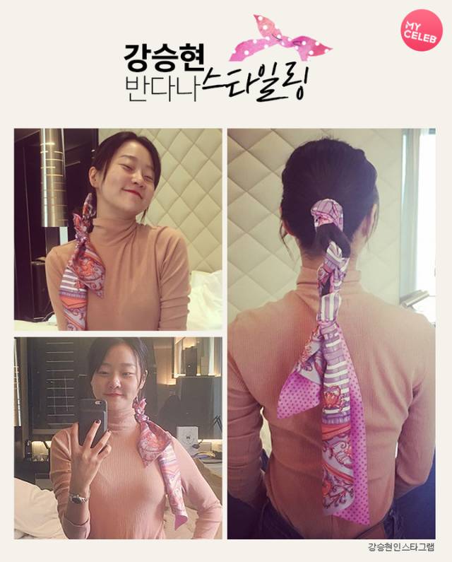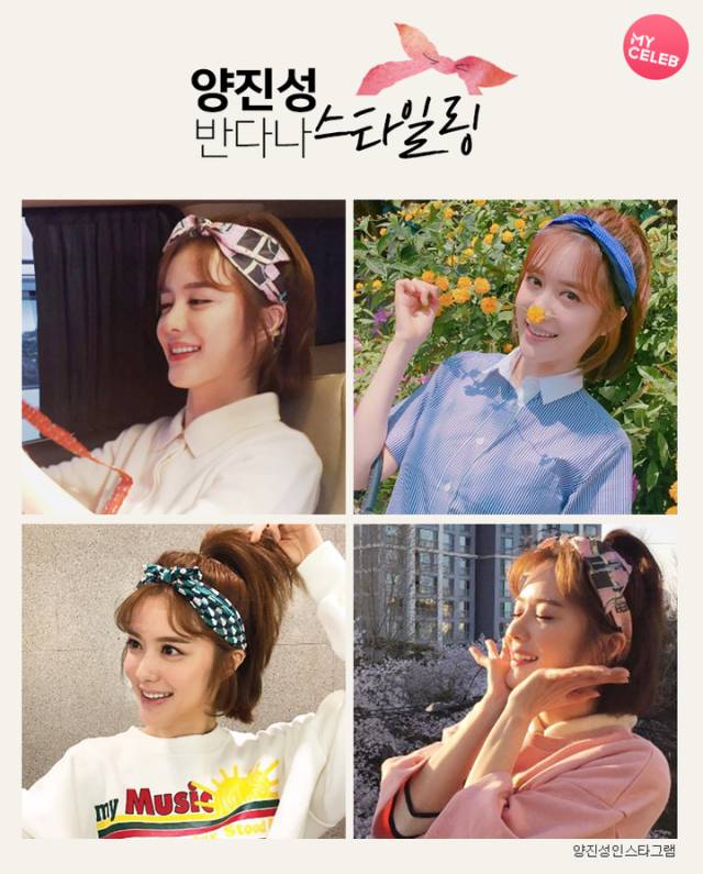 Lovely郑裕美啦!用一个发带将头发利索地整理起来,又能作为发饰起到装饰效果,看起来十分清爽活泼~