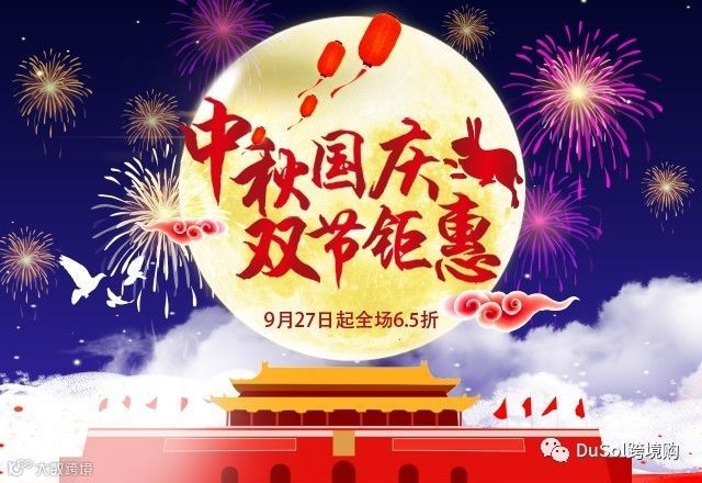 你们有长达8天的假期!我们有长达12天优惠!!!而且是全场商品!全场!全场!全场!9月27日-10月8日,Dusol跨境购全场6.5折!!!