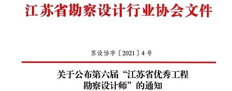 近日,江苏省勘察设计行业协会正式公布了第六届“江苏省优秀工程勘察设计师”名单。启迪设计集团王笑颜、李少锋、刘仁猛入选,至此启迪设计已有17位江苏省优秀工程勘察设计师。体现了企业技术骨干的高质量工程勘察设计水平,在科研技术创新及质量管理等方面卓有成效的工作成果和突破,并助力全省工程勘察设计行业的进一步繁荣发展。