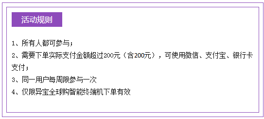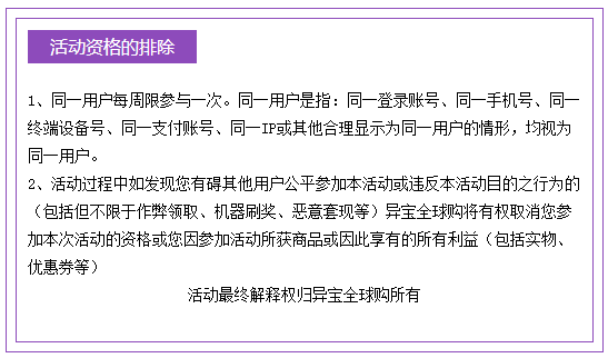 感谢您长期以来对异宝全球购“双休易购”活动的支持。从