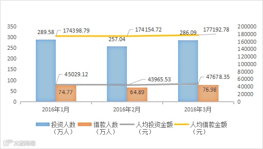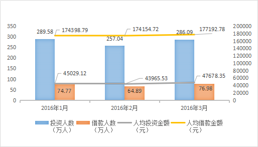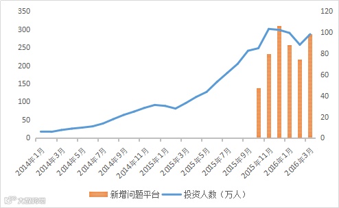 都说股民的记忆只有7秒,玩P2P的表示不服,他们可能根本没有记忆。撞了南墙还不回头。从2014年1月的17.19万人到2016年3月的286.09万人,P2P平台投资人数以惊人的速度膨胀,去年曝光了大批P2P平台跑路,所以从去年11月到今年2月投资人数有所下滑,但3月又开始回升。