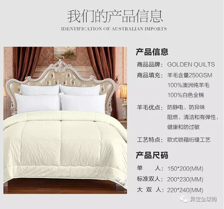 【奖品6】好品质源于好内在-澳洲MIG纯羊毛标准双人被