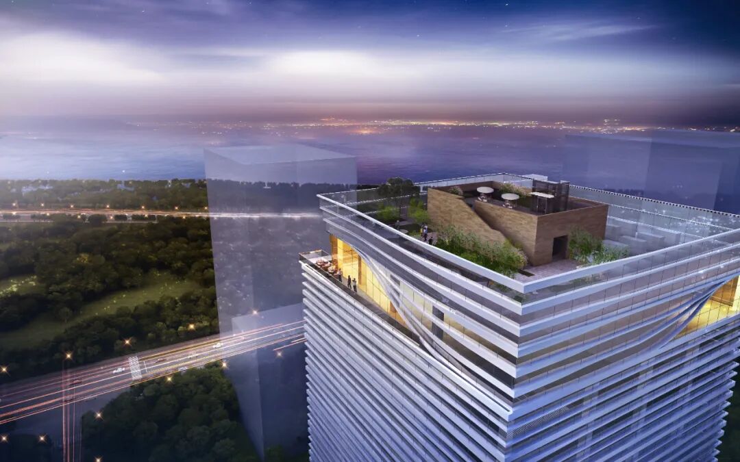 项目充分考虑了与城市道路的关系。建筑靠北,形成统一的城市界面,保证主路高新路空间形态的完整。裙房靠东北角,对外开放,服务城市;塔楼远离东侧支路,减少压迫,打造舒适的城市尺度,表达了设计者的人文关怀。