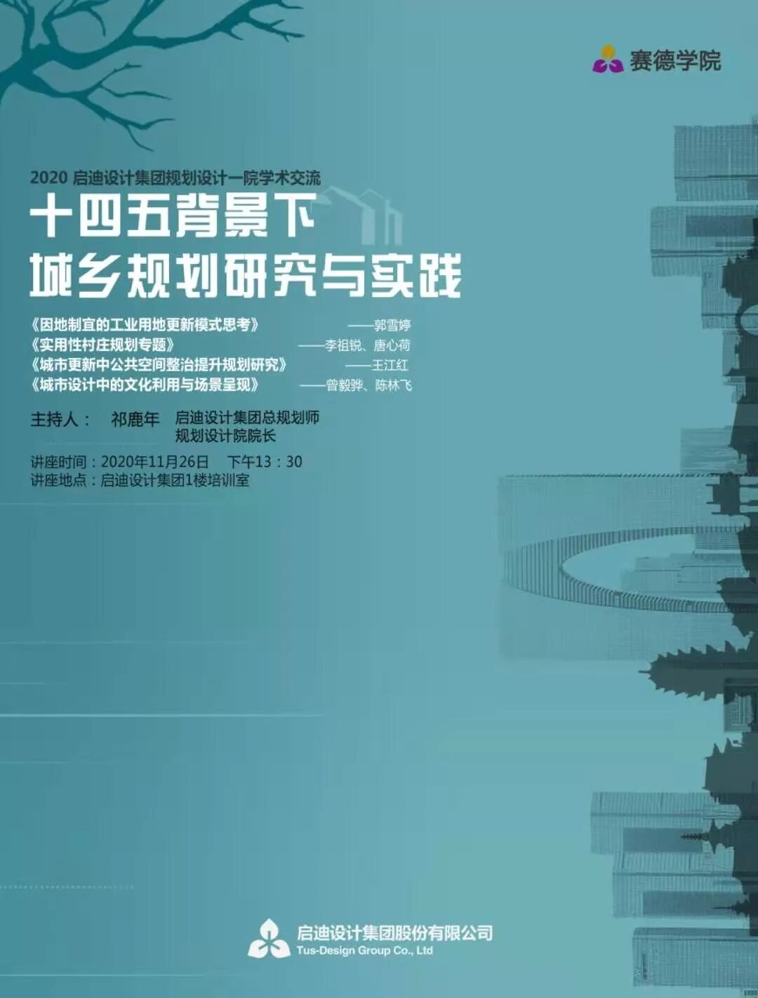 11月26日下午,启迪设计集团规划设计一院开展规划论坛,本次论坛以“十四五背景下城乡规划研究与实践”为主题,邀请六位规划师围绕工业用地更新模式、实用性村庄规划、公共空间整治提升、城市设计中文化利用等主题开展了广泛的研讨。论坛由启迪设计集团总规划师、规划设计一院院长祁鹿年主持。