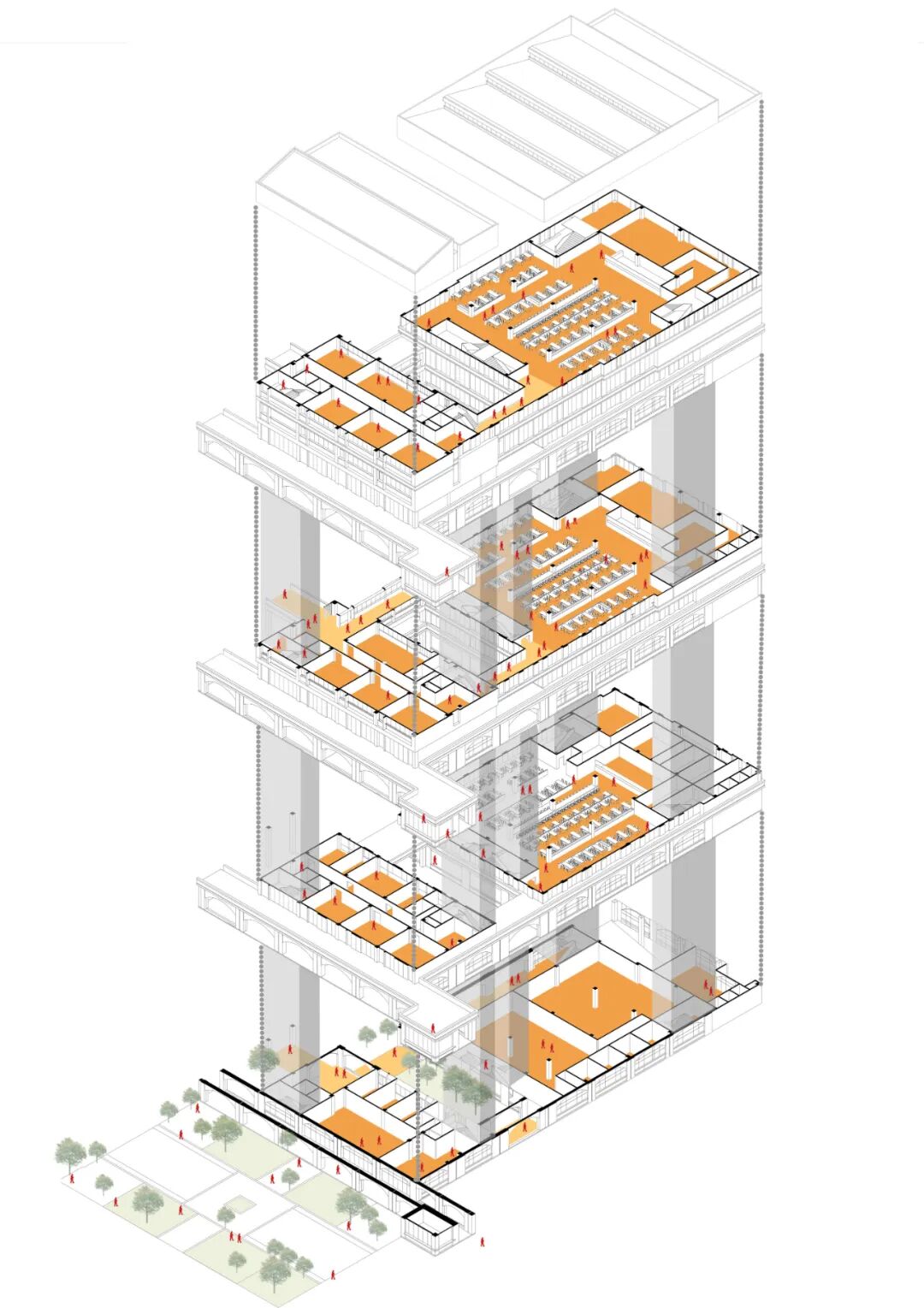 在升学环境和就业环境不断变化的时代影响下,传统灌输式的教学模式正在逐渐变化为开放与集中结合的新型素质教育模式。这样的教学模式需要层次更加丰富的教学空间,在市中心用地受限的情况下,如何能打造一所满足未来多种教学需求的新型校园,成为项目设计的重点和难点。