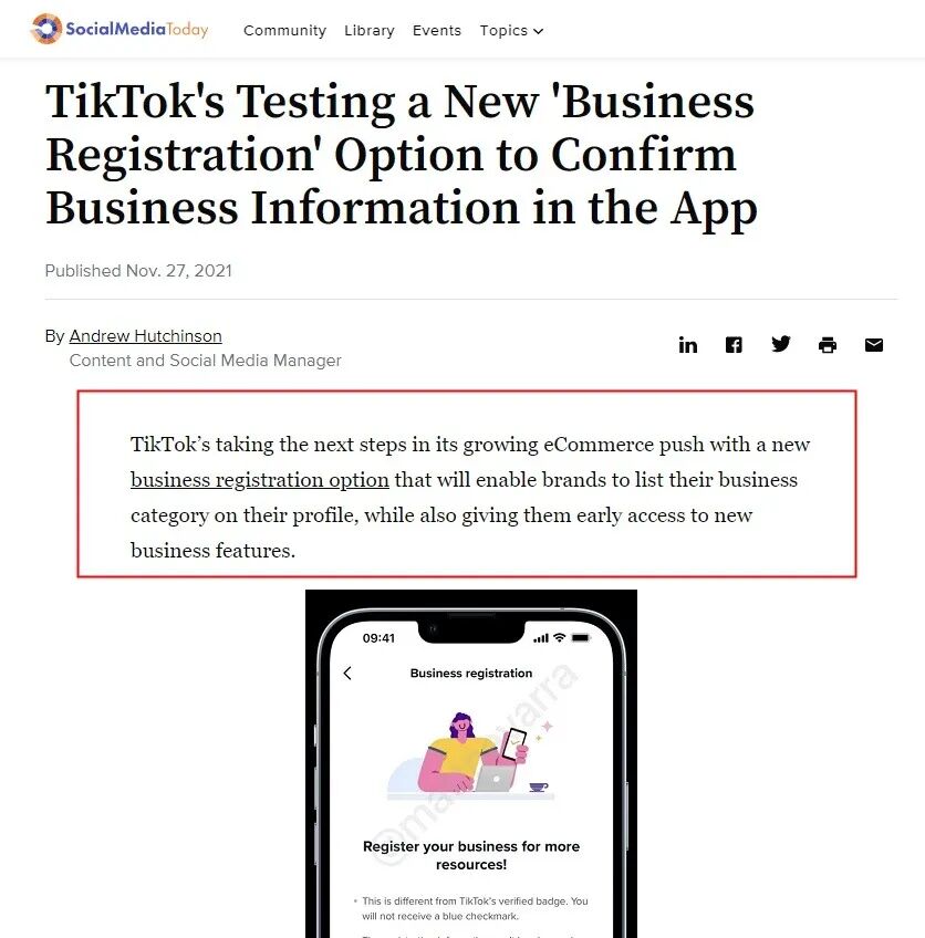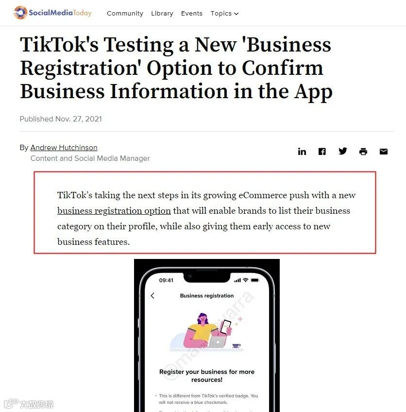 这将为TikTok提供另一种方式来收集有关企业用户的数据,同时还可以进行分类。通过更好地突出不同的业务并向相关企业用户展示这些企业,或将有助于其开展电商业务。