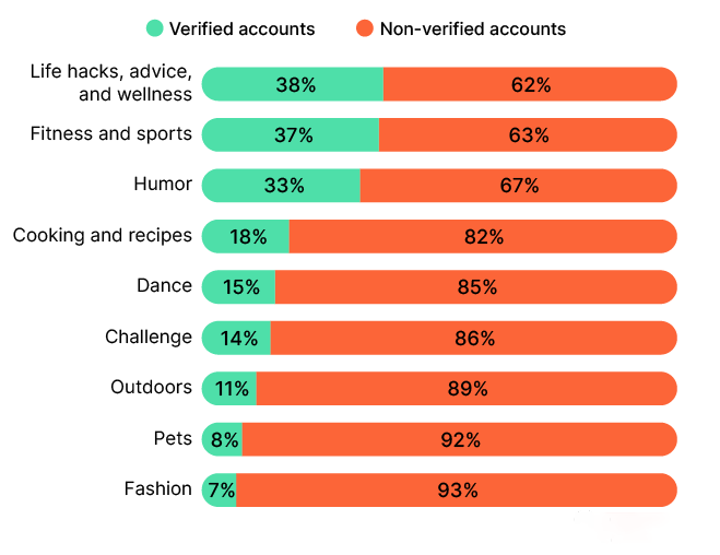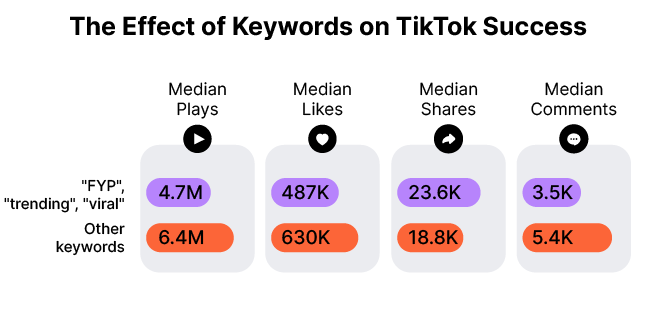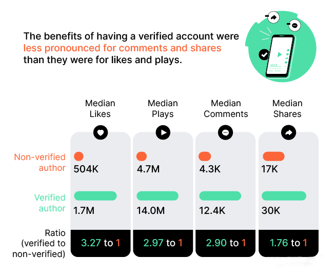 TikTok用户来响应,SEMRush进行了300个最流行的TikTok视频的分析,衡量什么共同的要素是影响包括某些主题标签和关键字可能(注:TikTok已如前所述那添加“ForYou”和“FYP”等标签对覆盖面没有影响),以及经过验证和未经验证的用户之间的互动差异等。