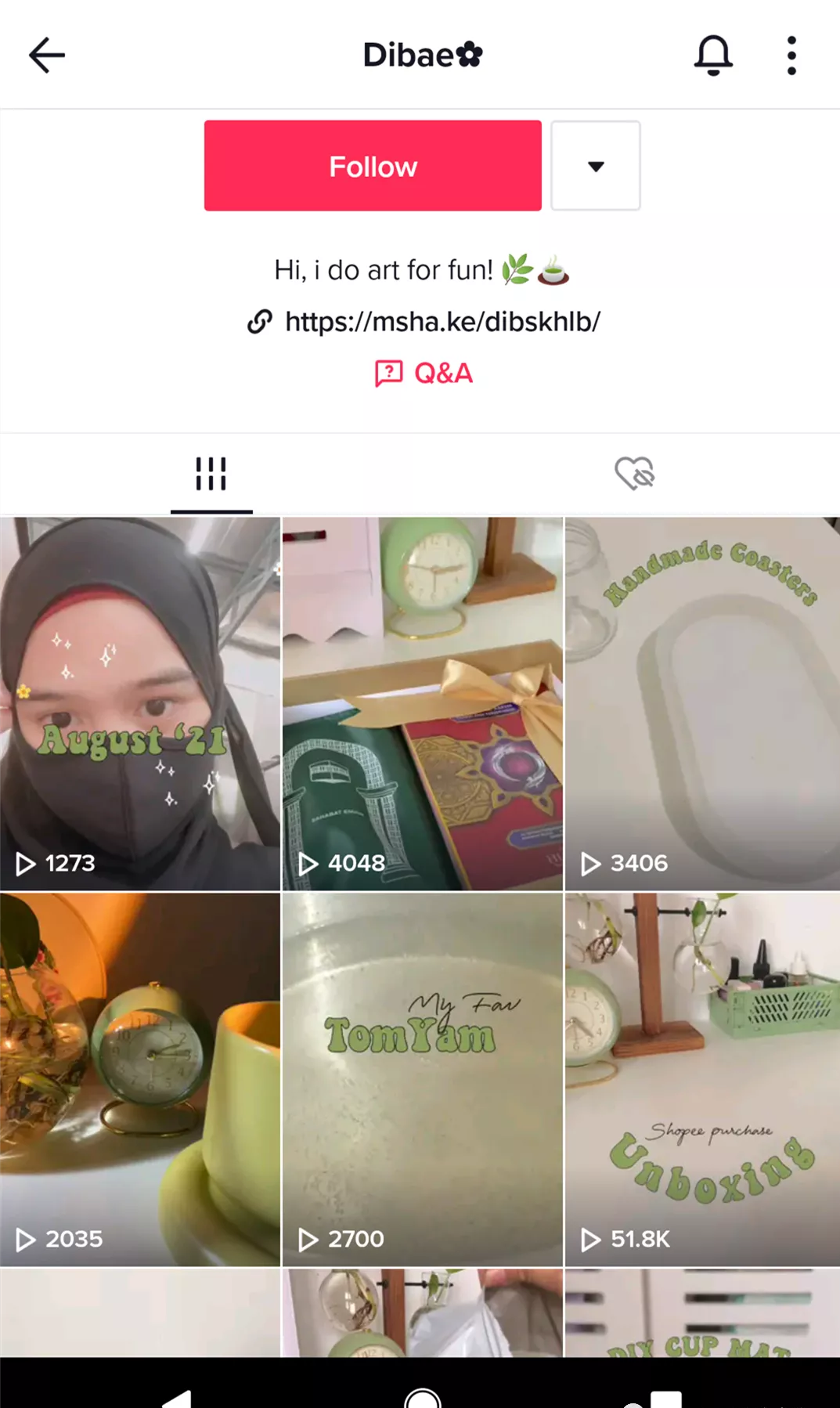 @dibs.khlb的粉丝不多,目前才7406人,但她还挺有流量意识的,会运营账号,产品风格以拆包裹为主,卖的是纺织布类还有各种小精品,风格小清新!