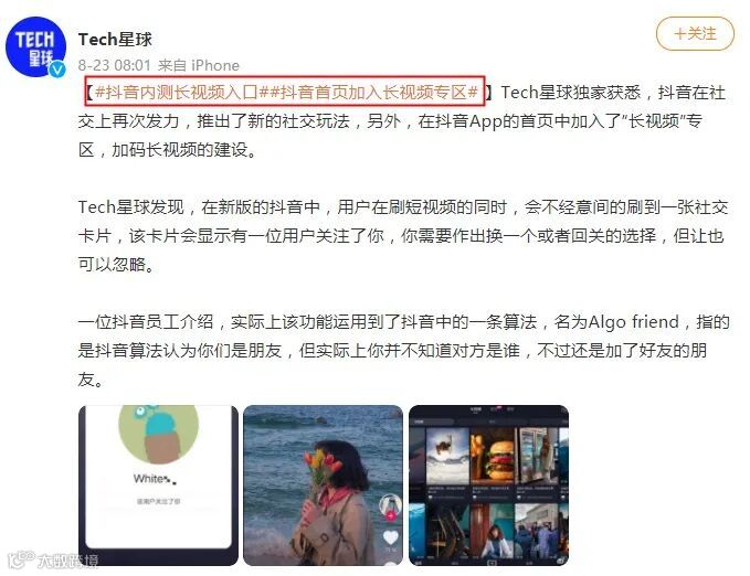 而TikTok国内版也即抖音早在2019年就已经允许用户上传15分钟的长视频,这也被认为是对于TikTok这次长视频尝试的测试。