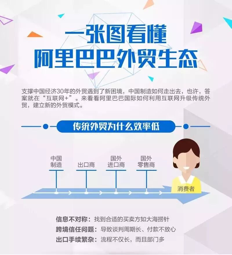 阿里巴巴集团CEO逍遥子在1月12日全球B2B生态峰会上讲到,在互联网和商业全面融合、供给侧全面升级的大背景下,B2B的春天正在到来。在本次会议上,阿里巴巴跨境电商给出了一系列的解决方案,小编给大家做了一个简单梳理,来一起看看,相对于传统外贸,阿里巴巴要改变什么?