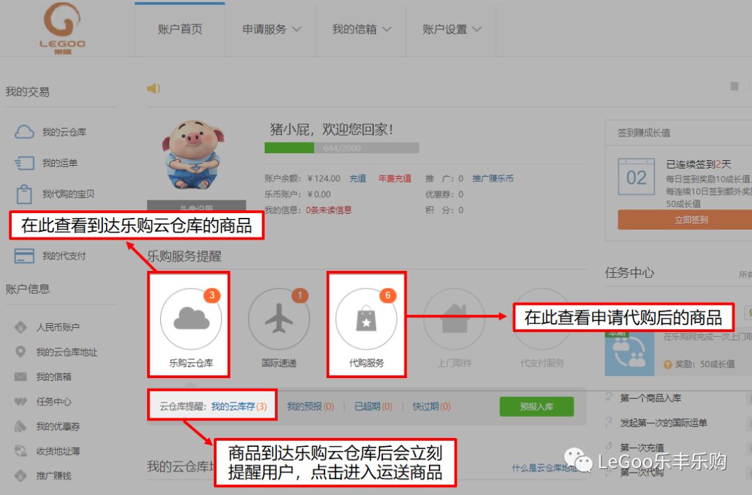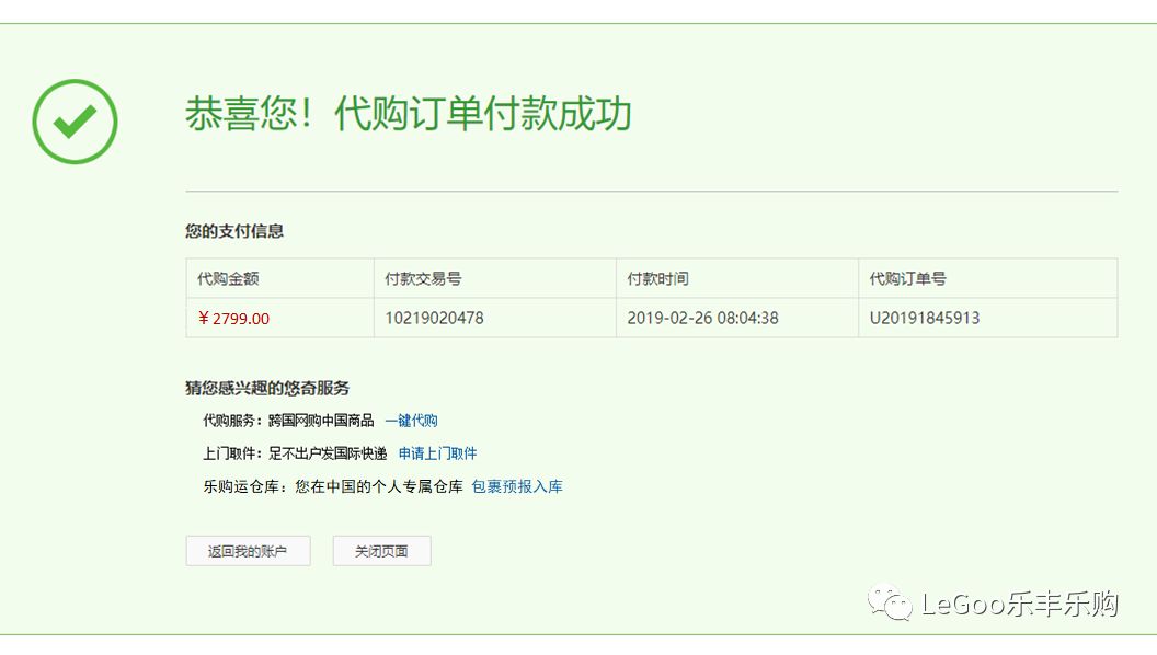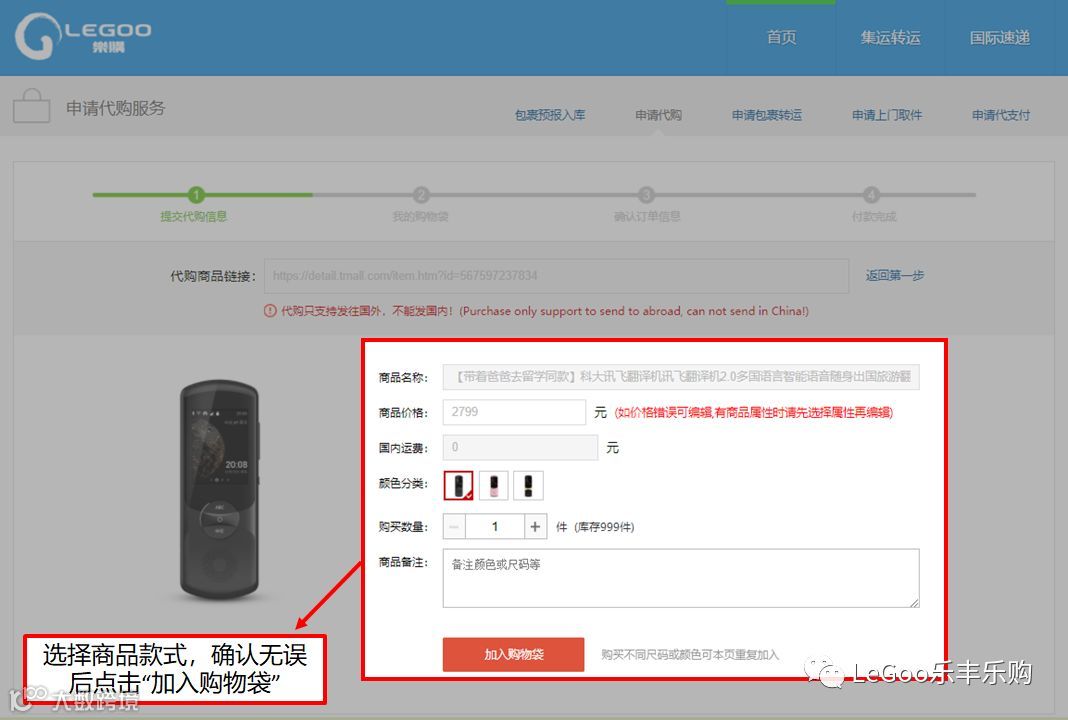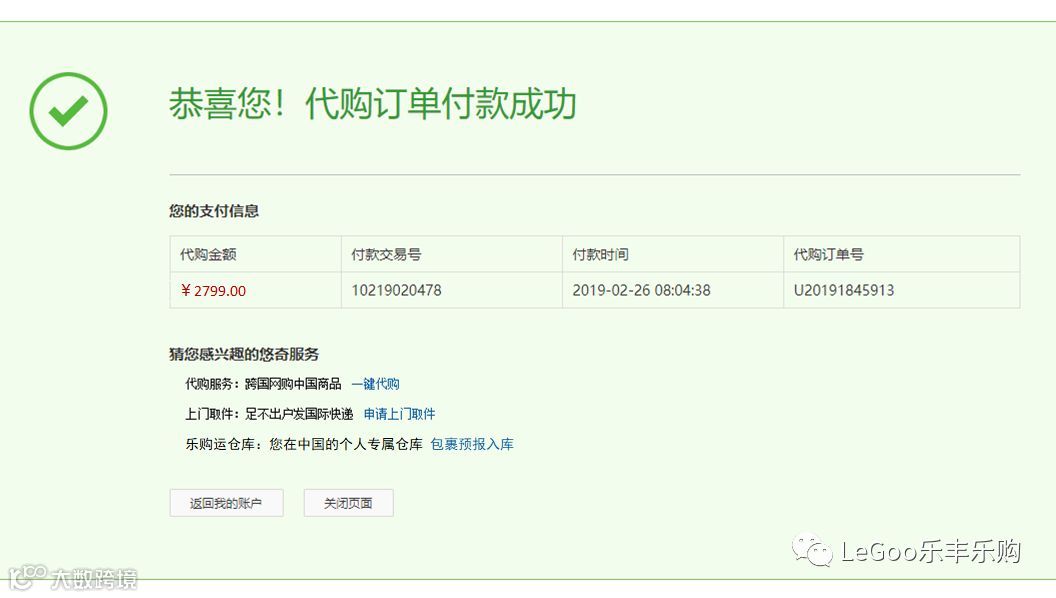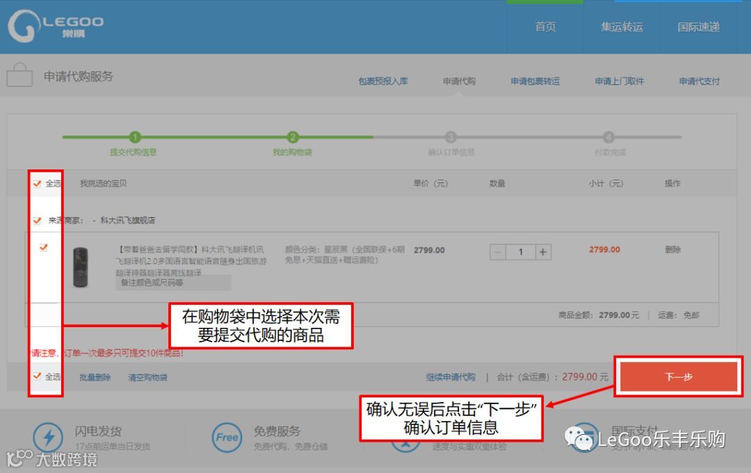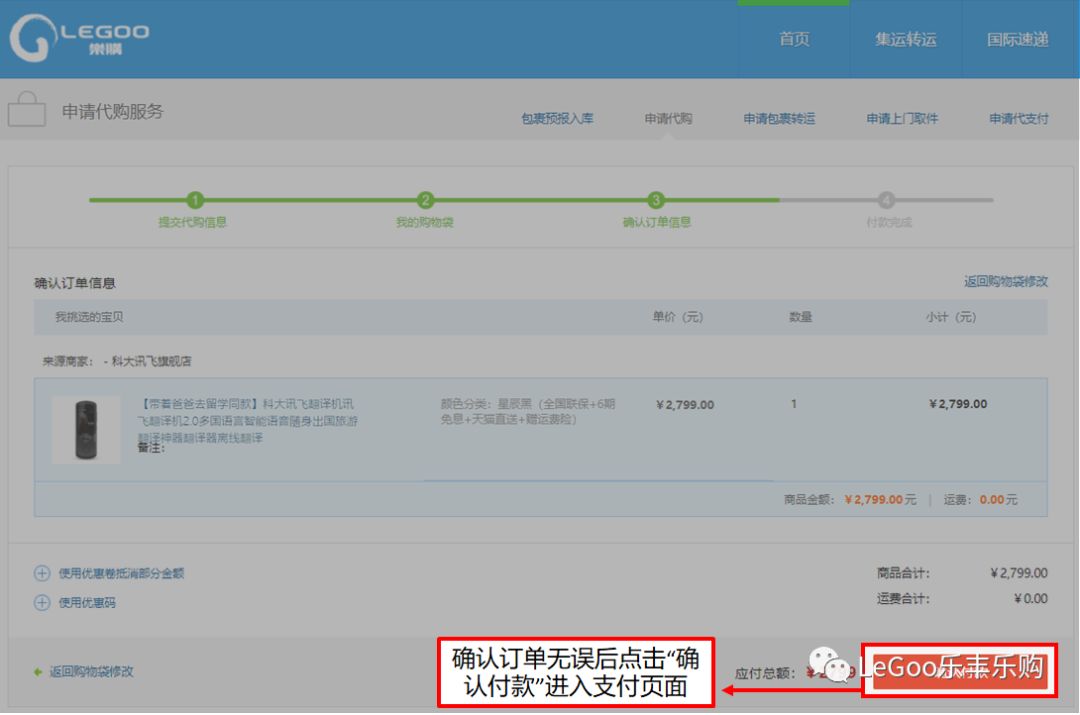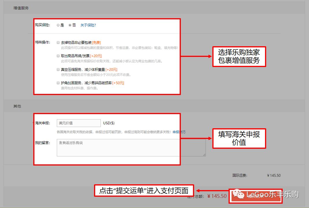 选商品—乐购代购—商品到达国内乐购云仓库进行个性化验收打包服务—支付中国至美国的低价运费