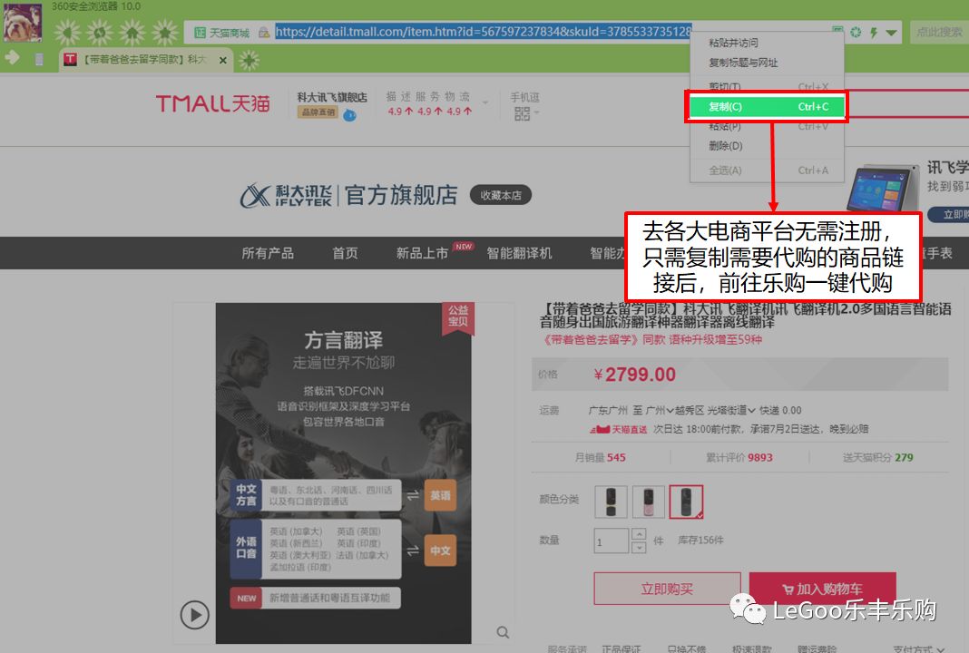 美国乐购专门服务于北美华人,全免服务费为“剁手党”们提供最便捷的“一键代购”服务、最贴心的独家个性化验收打包服务以及最低廉快速的物流快递服务来购买中国各大电商平台上的各式各样的商品!你不用有淘宝、京东账户,可不用有人民币支付,更不用有中国的地址,乐购帮你一条龙买遍整个中国!更重要的是!服!务!费!全!免!是不是很惊喜!是不是很期待!下面小编就教你怎么去使用乐购来畅游全中国的电商平台!