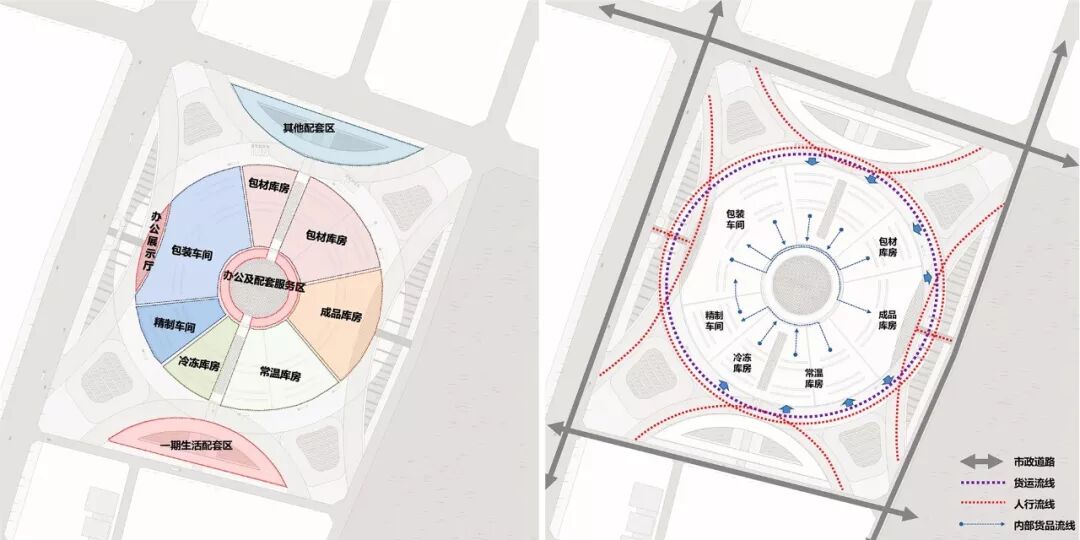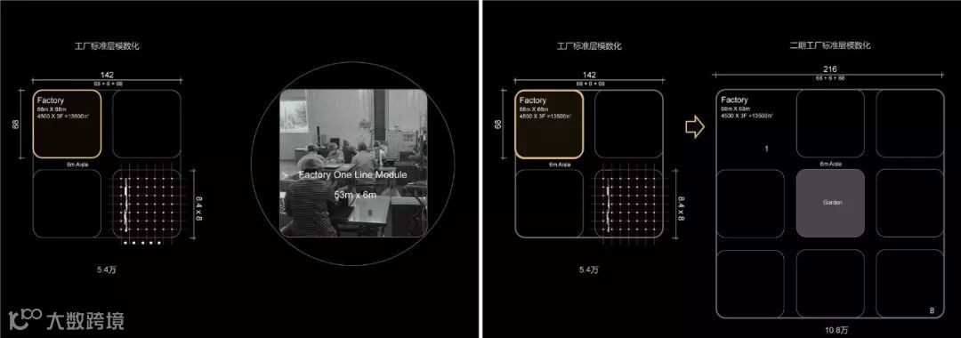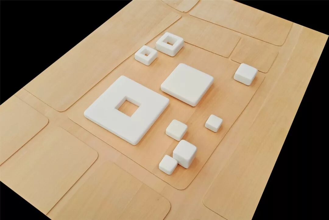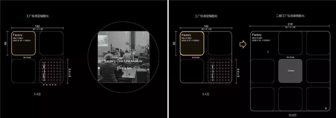 项目设计中团队一直在思考小罐茶的精神,是否陷入了一个更具象的所谓“传承”,历史的影子总是挥之不去,抽象的几何形状传承,更是追寻精神的重要问题,在讨论方案的过程中,团队提出了“方圆之间”,于是开始了向方形致敬的旅程,包括工厂模数化的研究,希望用技术保留现代人的筋骨,传承文化里的简约与和谐。