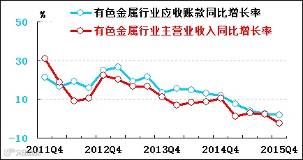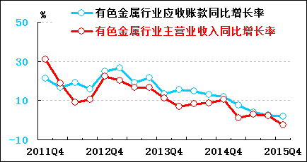 经初步季节调整,截至四季度末,有色金属行业应收账款为3113.0亿元,同比增长1.8%,增速比上季度下降0.7个百分点。有色金属行业应收账款平均周转天数为18.1天,比上年同期增加0.8天。应收账款同比增速虽然连续6个季度下降,但与销售收入的增速差距有所扩大,加上应收账款平均周转天数上升,表明企业回款情况实际上未有明显好转。