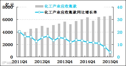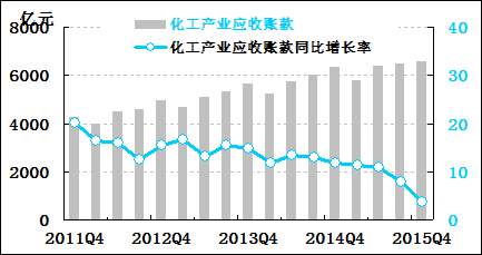 经初步季节调整,四季度化工产业应收账款为6566.1亿元,同比增长3.8%,比上季度下降4个百分点,与销售收入降幅大体相当。
