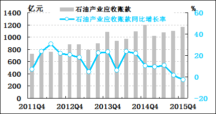 经初步季节调整,截至四季度末,石油产业应收账款为1160.2亿元,同比下降2.8%(上季度同比增长1.2%),主要与销售收入大幅下降有关。经测算,四季度石油产业应收账款周转天数为11.1天,比上年同期延长2.3天。