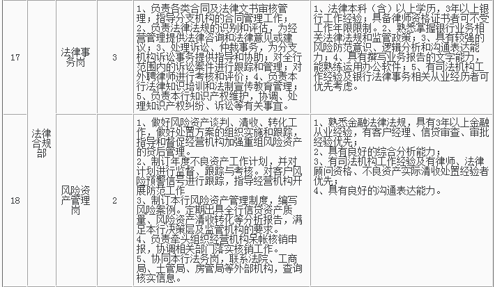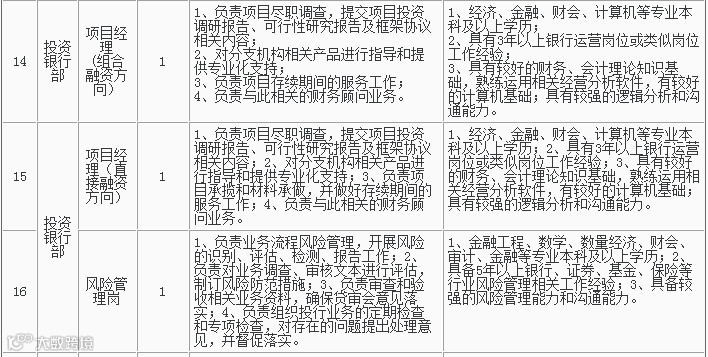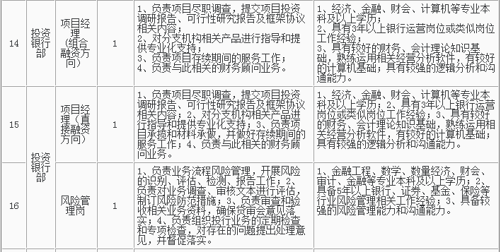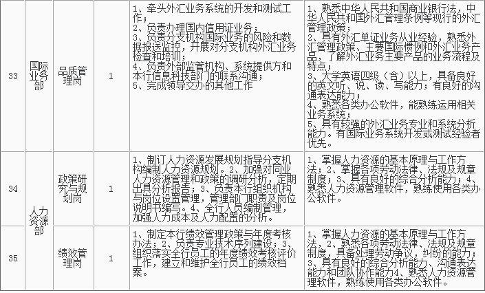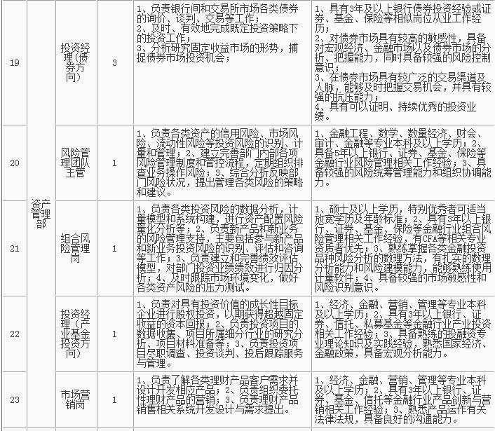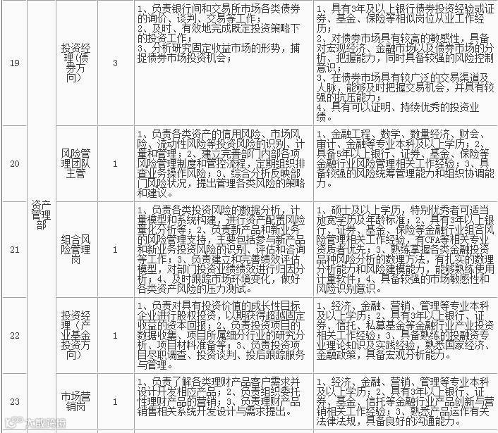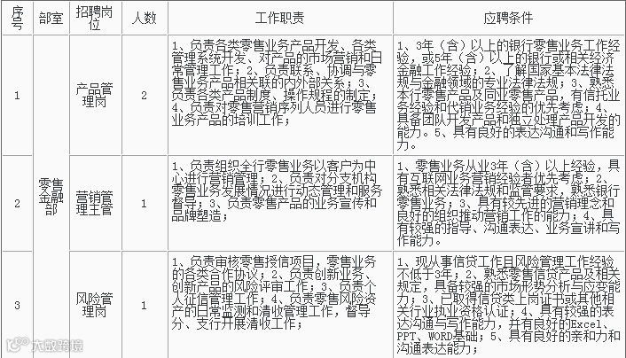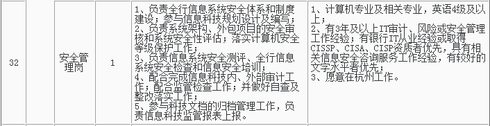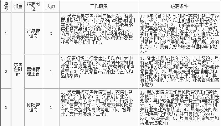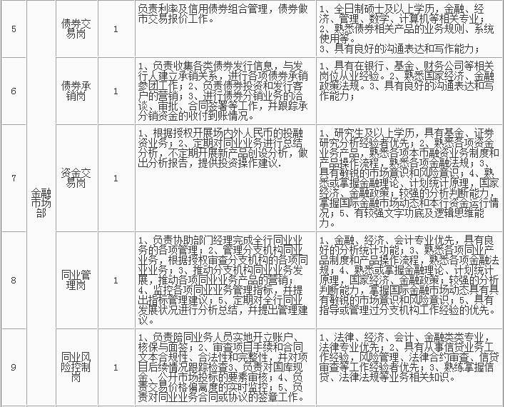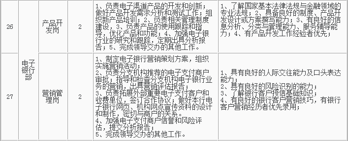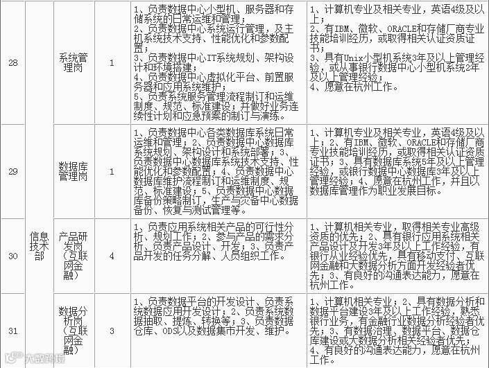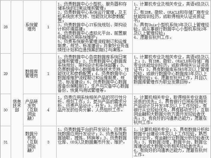 1、招聘岗位及人数见下表,招聘详情可浏览杭州银行网站(http://www.hzbank.com.cn)或前程无忧网站(http://www.51job.com)