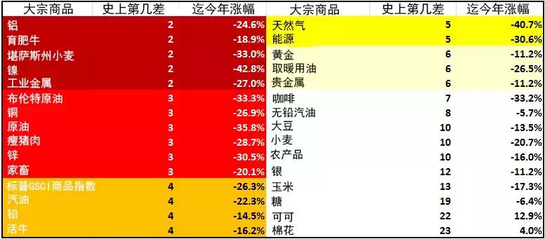 在研究中,标普追踪了每一种类的大宗商品从1970年至今的表现,发现2015年对至少17种大宗商品而言,是45年来前5差的年份。