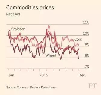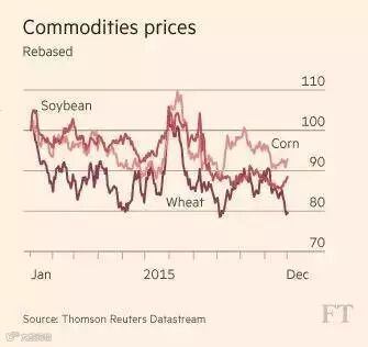 农产品也没能逃脱大跌的命运,今年小麦、玉米的价格都有不小的跌幅。至于2016年的走势,一个主要的关注点是厄尔尼诺现象,据预计明年的厄尔尼诺现象强度大且持续时间长,可能会对农作物造成威胁。