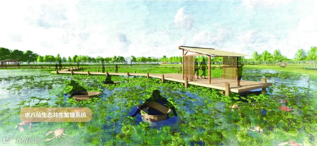 设计围绕“蟹乡、蟹商、蟹品”三方面对消泾村进行村庄的修复和发展,以满足村庄居民的需求。通过营造特色水净化生态水八仙共生蟹塘系统对进行蟹塘改造,打造产业养殖的示范蟹庄;依托现村落电商进行模式改建,吸引年轻人返乡创业,通过电商创客集市汇聚人气,营造电商蟹销售模式和电商农家乐模式,创新青年电商创客地+模块化的民居电商模式;以消泾湖蟹文化村为基础,选择村口示范区进行示范设计,打造以消泾蟹宝为主题的清新水乡生活品味村旅游品牌。