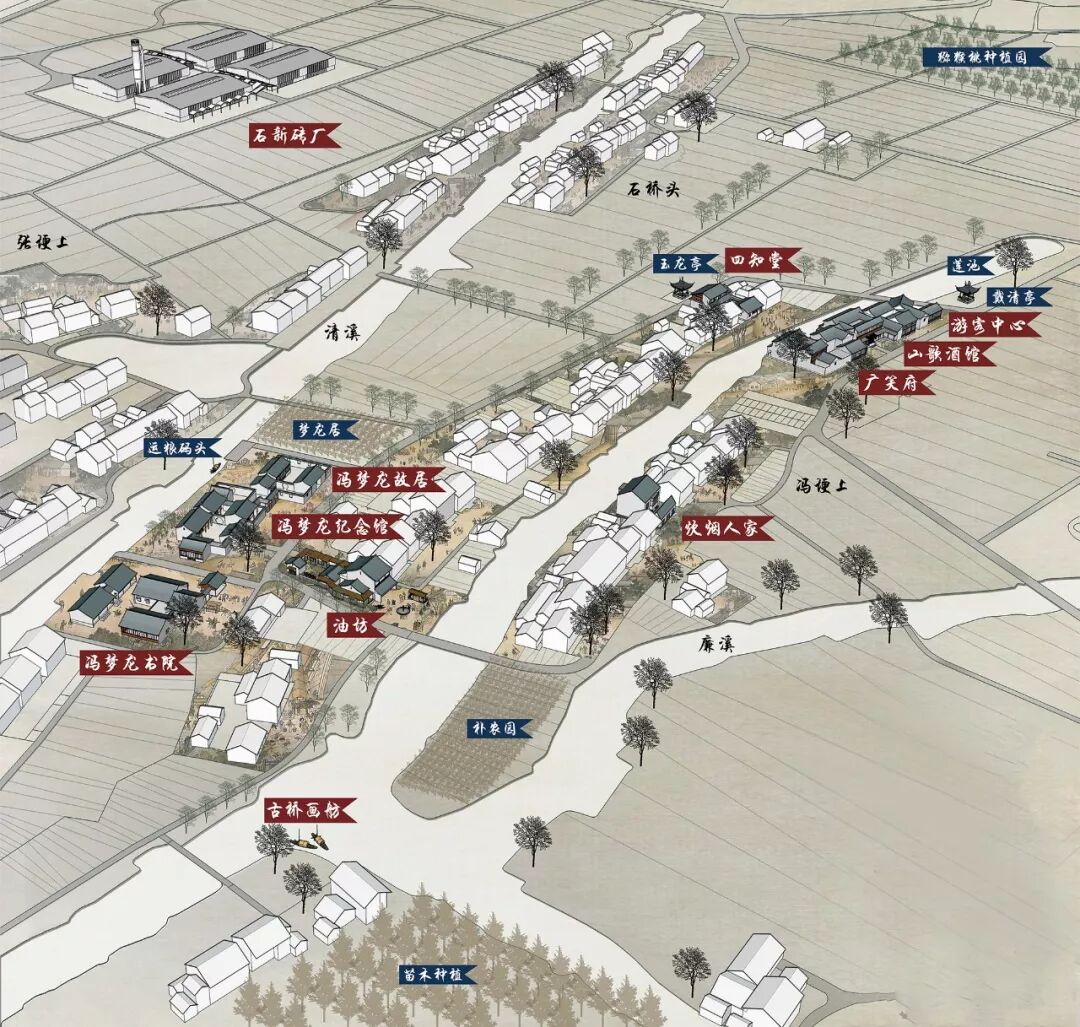设计从农林出发,充分挖掘冯梦龙村的文化内涵,辅之以旅游产业。将发展以生态休闲农业为基础,以冯梦龙文化为魂,以宣扬廉政文化教育为目的,打造一个集廉政教育培训、冯梦龙文化传承、花果体验、乡村休闲旅游于一体的中国冯梦龙村。