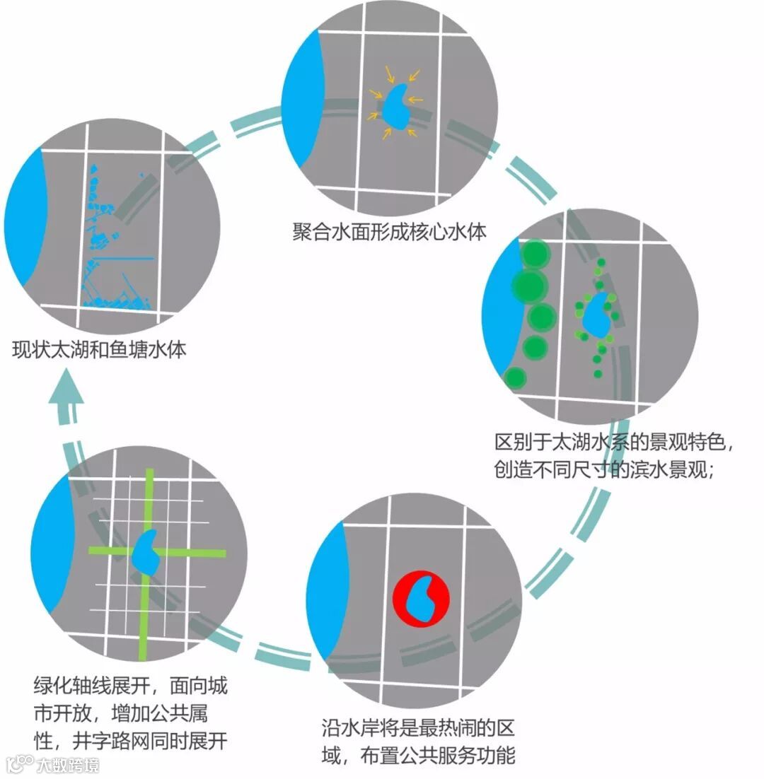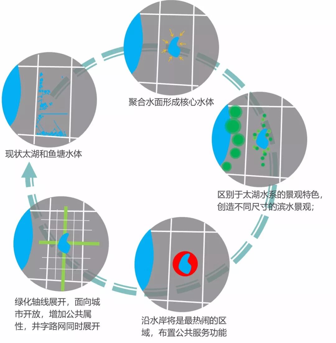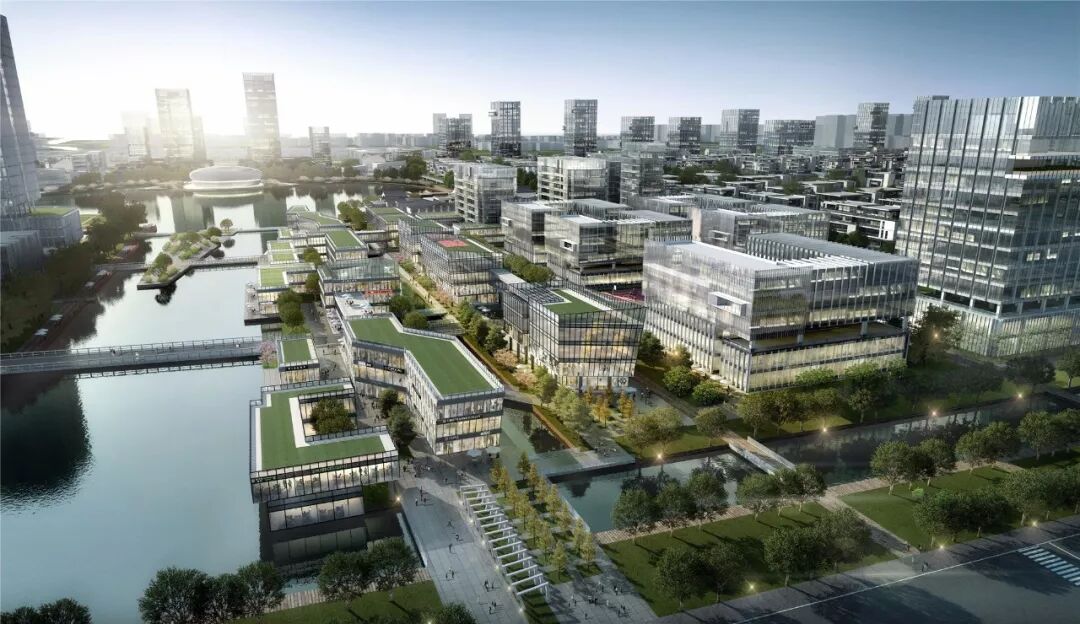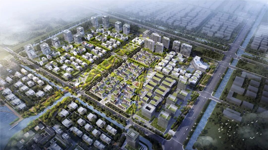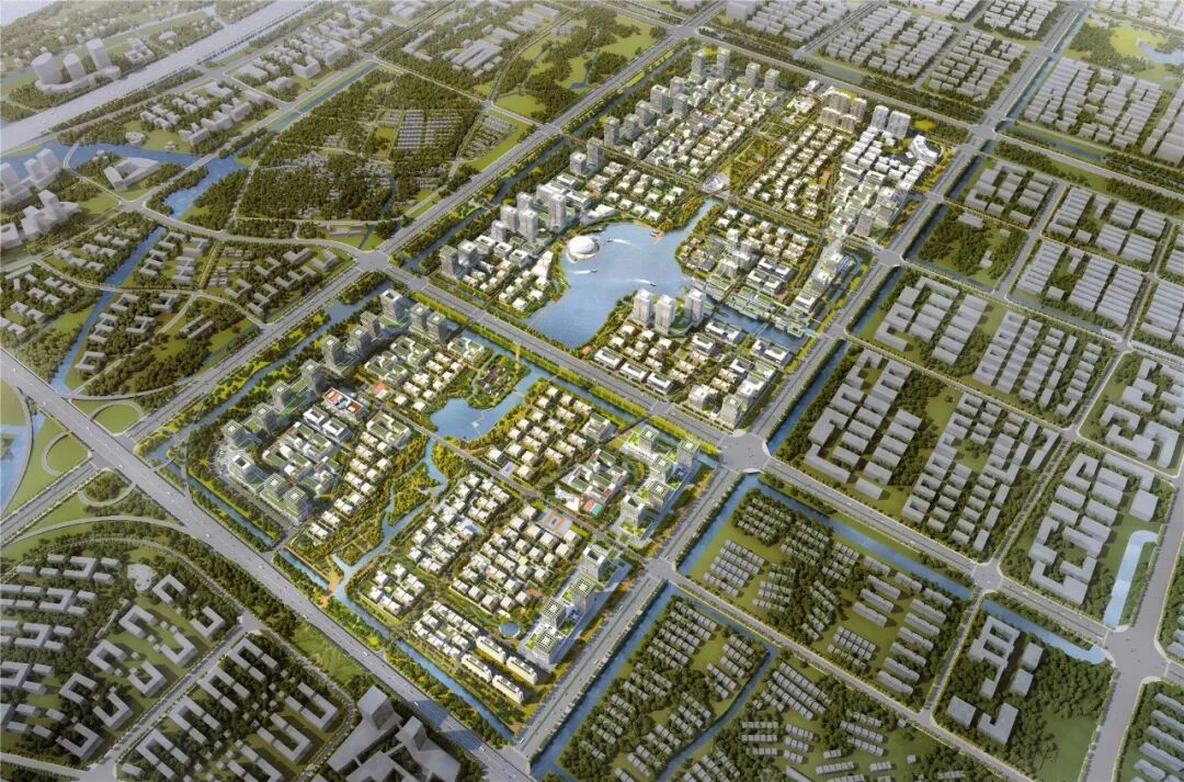 项目通过聚合区内水体,重塑水乡景观特色,以作为基地现状生态环境的延续;通过核心区域服务功能的配置,完善区域的城市配套服务功能;通过井字形路网与景观轴线的展开布局,使园区更好地融入到周边城市环境。