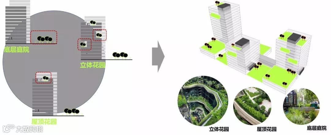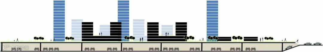 园区通过网络状展开的道路串联各个区域,针对不同功能的街区,提供不同密度的路网系统。在产业单元的科研区创新性地设置空中花园,供人们步行和游憩,半地下空间区域提供车辆的穿行与停放功能,营造人车分流的典范花园办公空间。