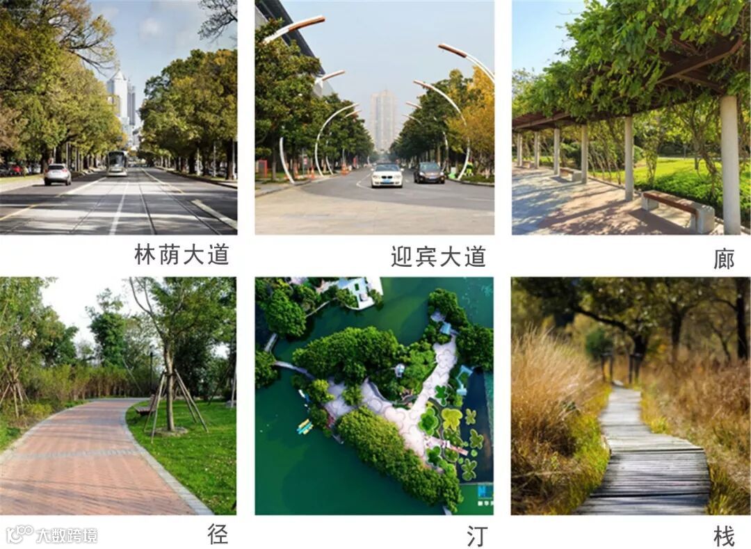 园区景观塑造的点睛之笔除了对山水空间的多重定义,也体现在亭台楼阁轩榭廊七个要素的运用,通过七要素在景观路径上的点缀,将苏式园林布景特色进一步融入到园区景观营造中。