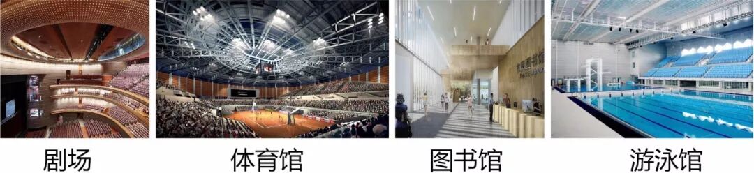 针对文体中心庞杂的场馆功能,设计师结合任务书要求进行重新梳理,将游泳馆、体育馆、剧场、图书馆等功能独立设置,相互渗透,共同设计。