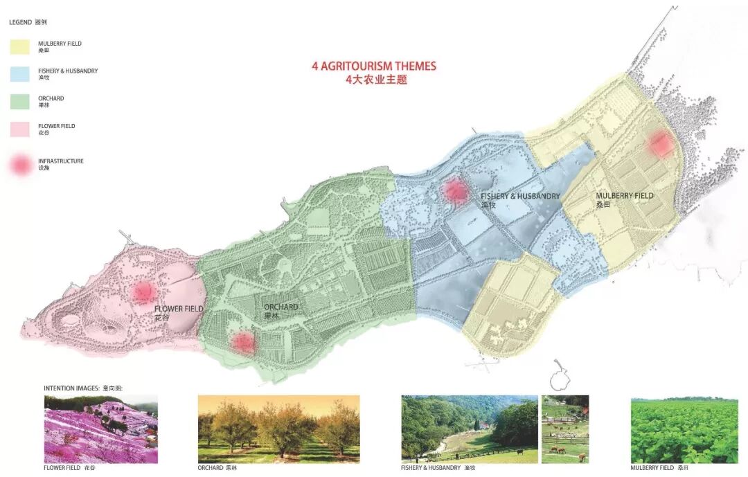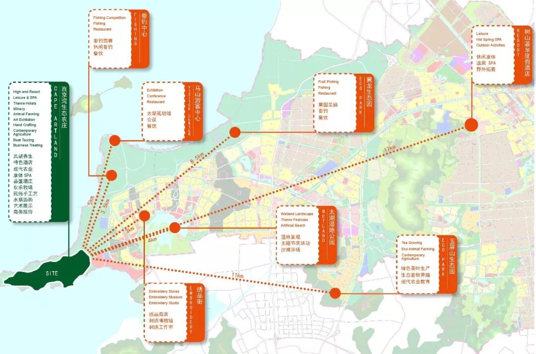 主题定位:以太湖山水为环境背景,苏州民俗为人文底蕴,生态农庄为体验内容,现代艺术为主题核心的高端综合性农业旅游度假综合体。