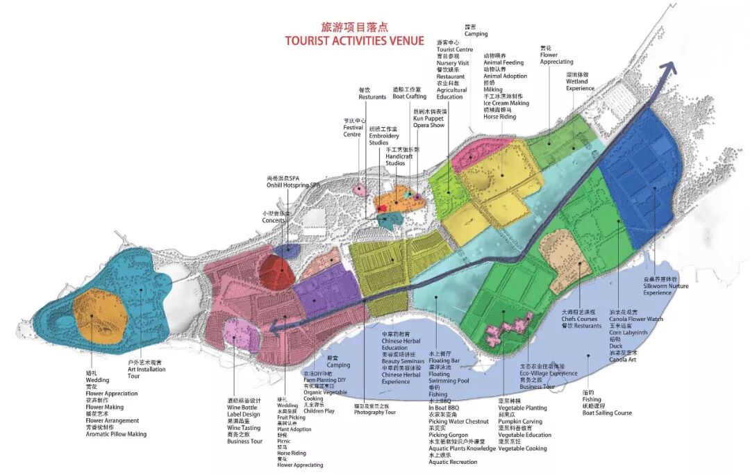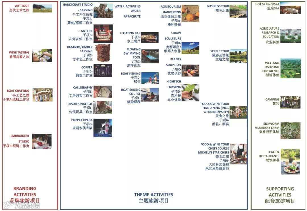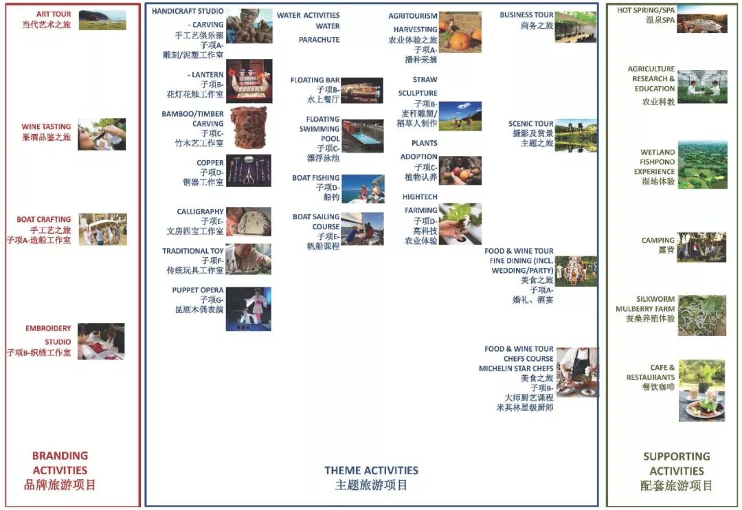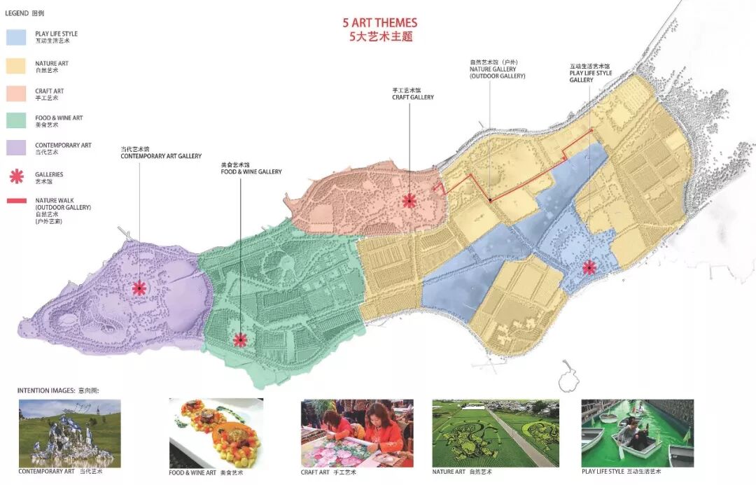 主题特色:五大艺术主题:当代艺术、美食艺术、手工艺艺术、自然艺术、互动生活艺术。四大农业主题:花谷、果林、桑田、渔牧、