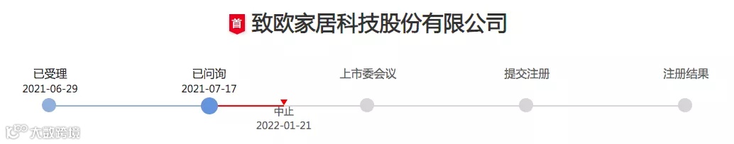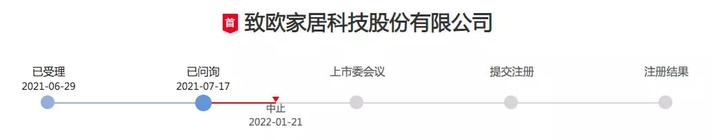 1月21日,致欧家居主动申请中止发行上市审核程序,深交所已予以批准。目前,致欧家居创业板IPO审核状态已变更为“中止”。