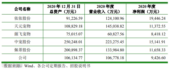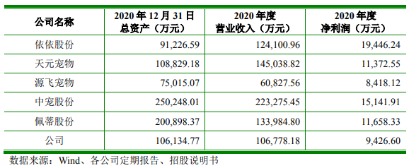 但与同行相比,中恒宠物2020年的营业收入和净利润均处于落后地位。