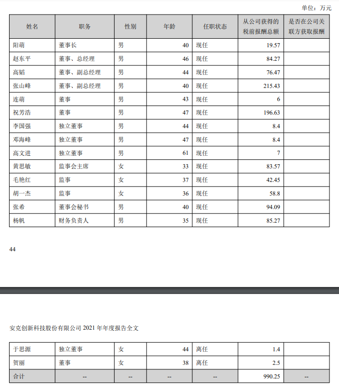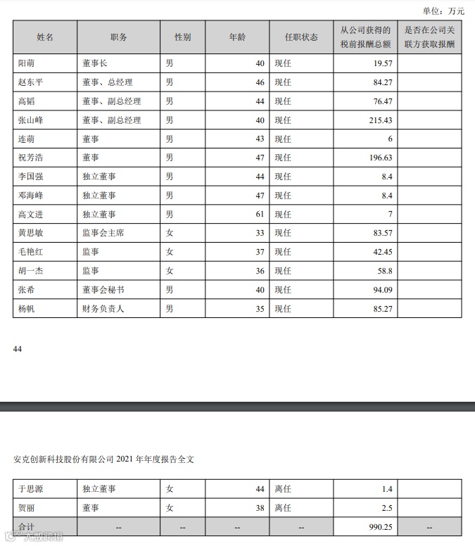 可以看见,2021年安克创新公司的董事(不含独立董事)、监事、高级管理人员及其他核心人员的总薪资为990.25万元,其中最高高管为张山峰(董事、副总经理)年薪215.45万元。