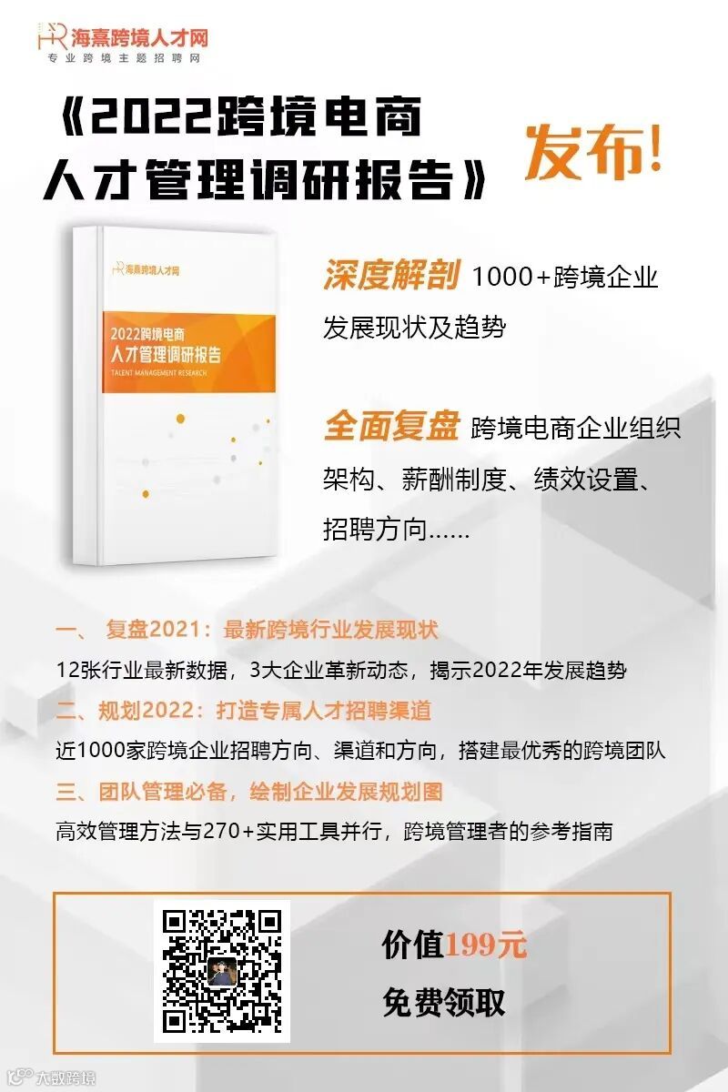 如果卖家需要了解详细的跨境电商企业发展现状、薪资水平、管理思路等,扫码海报二维码,免费领取价值199元《2022跨境电商人才管理调研报告》电子版。