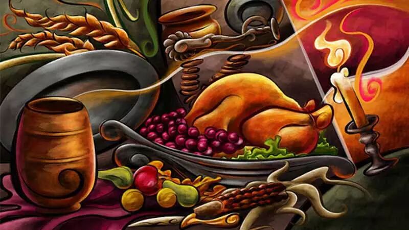 火鸡已经成为感恩节的象征,在感恩节传统的国家里,家家户户都要吃火鸡,除此之外还吃一些传统菜肴,例如西葫芦、奶油洋葱、土豆泥、南瓜饼等等。