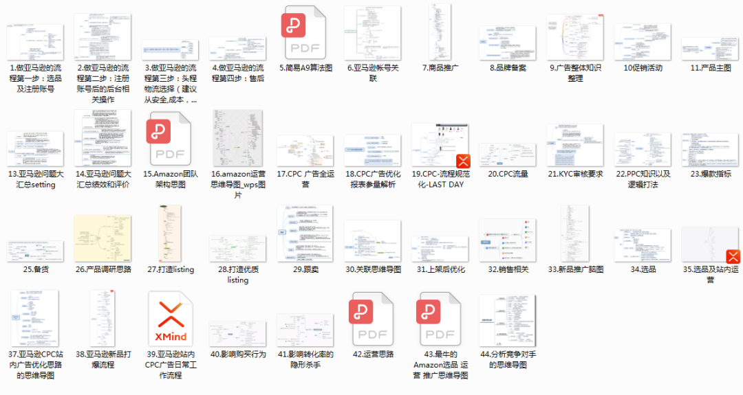 这20+思维导图涉及商品推广、Listing优化、新品推广、CPC优化思路、新品爆款流程及转化率提升等,能解答运营们的疑问,快速提升新品推广能力。