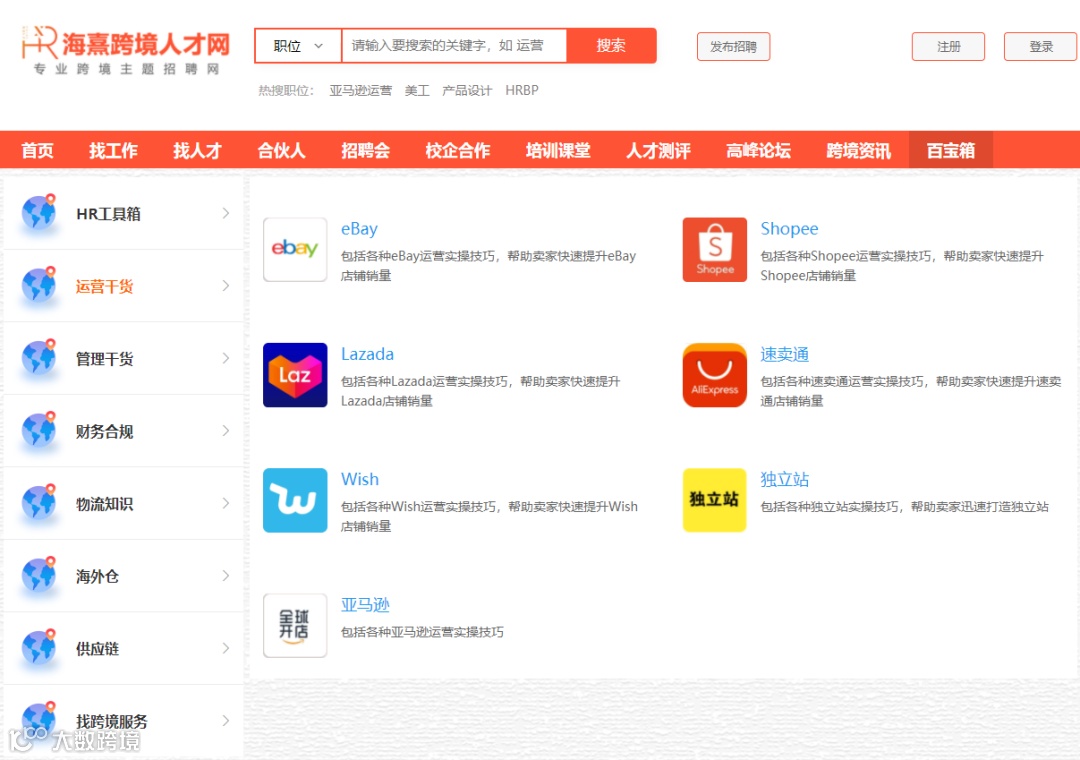 如果跨境运营、企业管理者及跨境HR,需要更多关于运营、管理及招聘的干货,可以【点击登录】到海熹跨境人才网百宝箱,从HR工具箱、运营、管理、财务合规、物流知识、海外仓、供应链、找跨境服务等多种功能限时免费为大家答疑解惑。