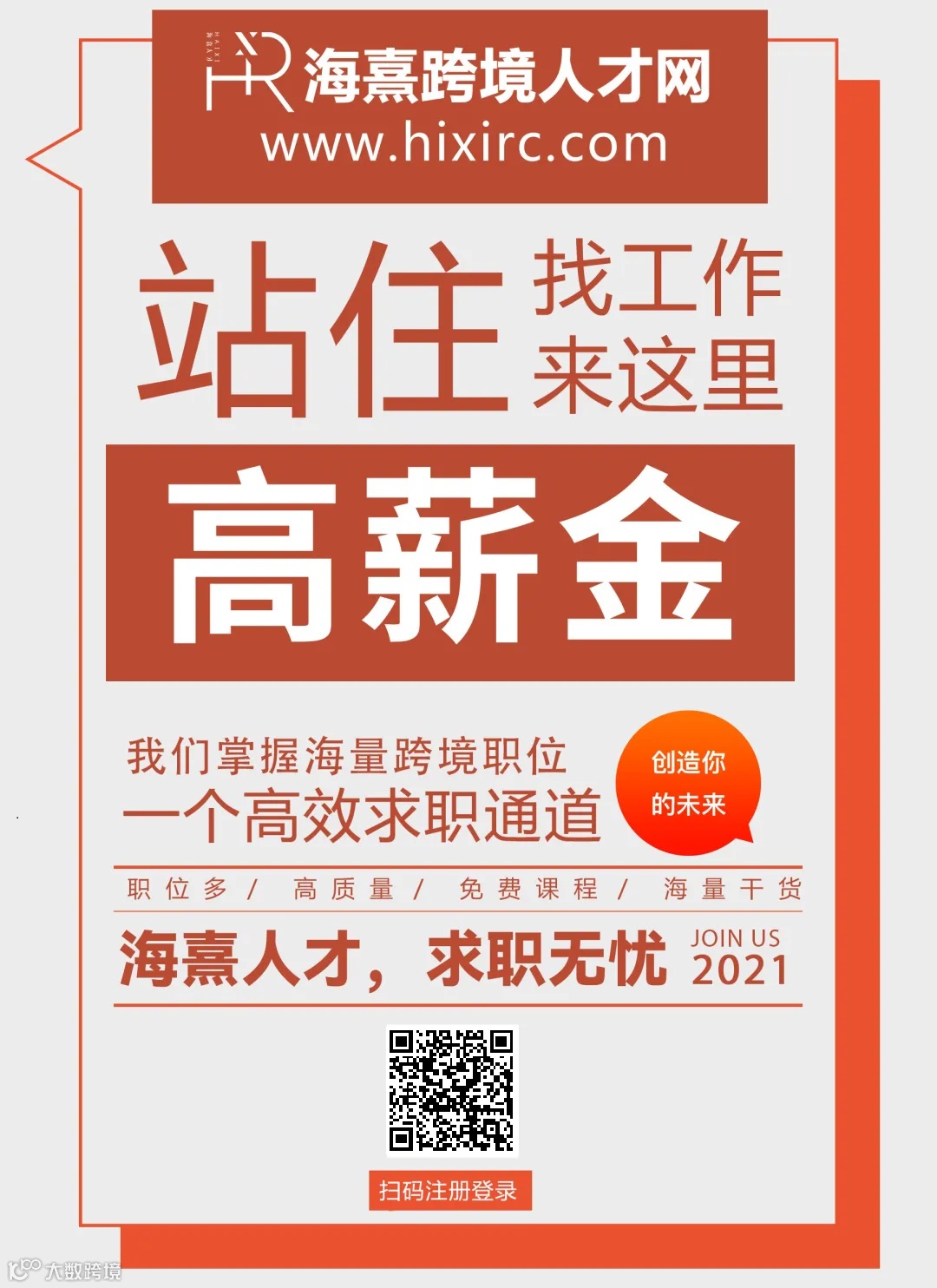 具体详情,也可点击文末图片,到海熹跨境人才网百宝箱查看哦~