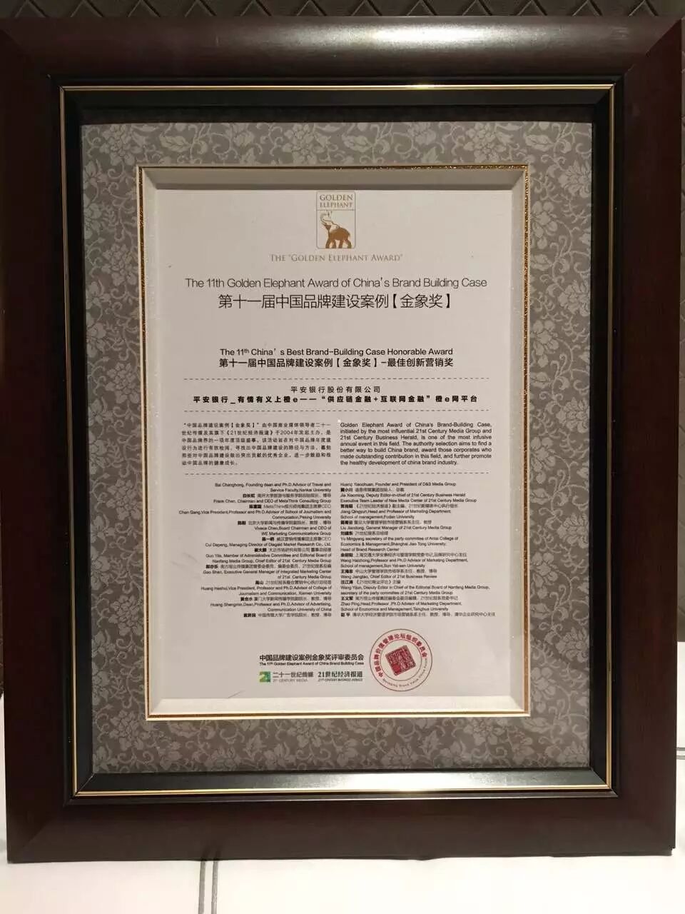 10月30日,由二十一世纪传媒、21世纪经济报道主办的“2015中国品牌价值管理论坛”暨“第十一届中国最佳品牌建设案例【金象奖】”颁奖典礼在上海成功举办。其中,平安银行荣获“中国最佳品牌建设案例奖”。同时,平安银行橙e网还被授予“中国品牌建设案例【金象奖】-最佳创新营销奖”。