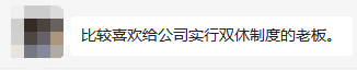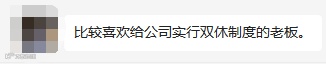 “喜欢放双休的老板,如果是放双休的老板有更大的几率说明他重视员工感受,而不是一味想着挤压员工时间。”