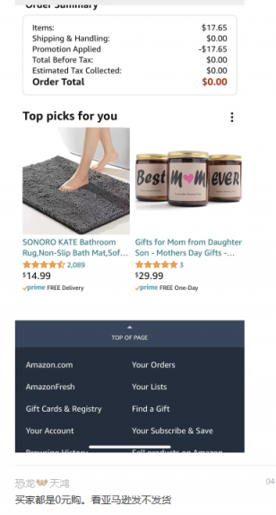 从部分海外消费者反馈情况来看,有大量的人在亚马逊系统出现问题期间进行了超低价下单,甚至0元免费购买。