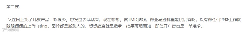 该运营从网上找了几款产品,“没有做任何准备工作就上传Listing,图片都是搬别人的”,再这种情况下,即使该运营开广告也一单难求。