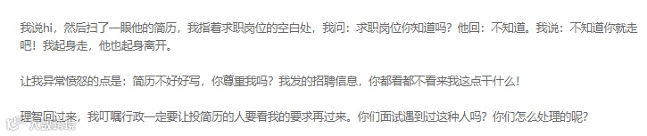 “想了解简历上了解不到的信息,直接面对面沟通就好了,不然干嘛叫面试。”
