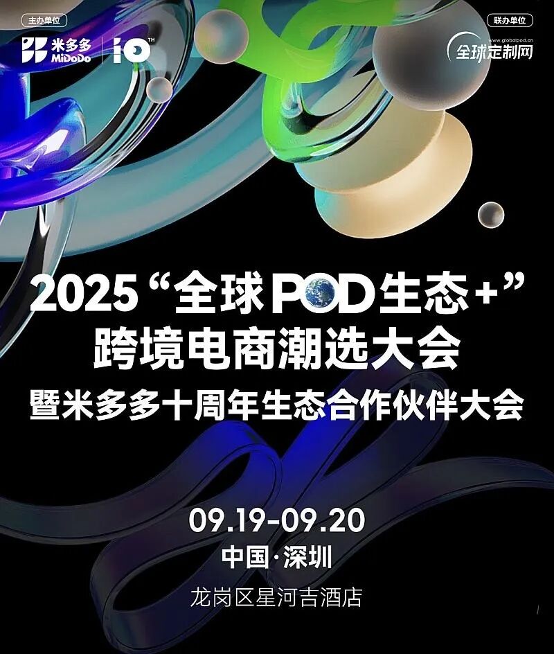 为推动中国POD产业迈向全球定制领域的新高度,全球定制网携手米多多,共同筹划了GO Global2025全球POD定制出海生态大会。此次大会汇聚了众多平台官方代表、顶尖POD工厂、行业领先的卖家以及头部POD服务商,共同打造一场规格空前的行业盛宴。