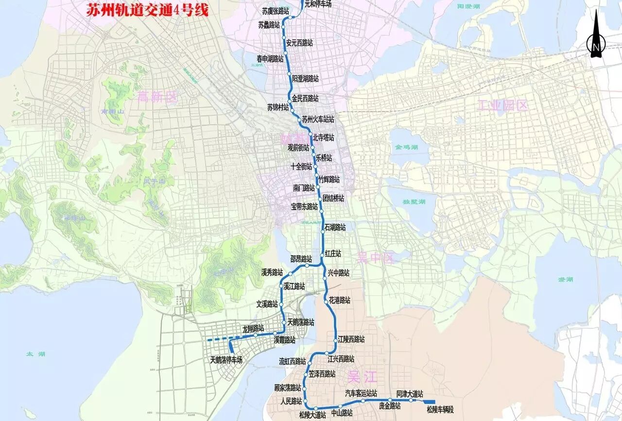 2号线:高铁苏州北站站、陆慕站、苏州火车站站、石路站、桐泾公园站、石湖东路站、尹山湖站、松涛街站、金尚路站