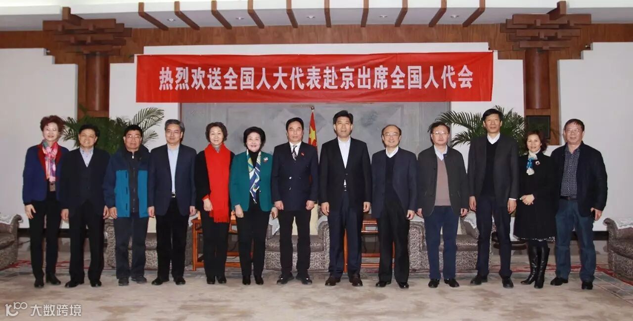 ▲苏州设计领导班子欢送戴雅萍代表(中)赴京出席全国人代会