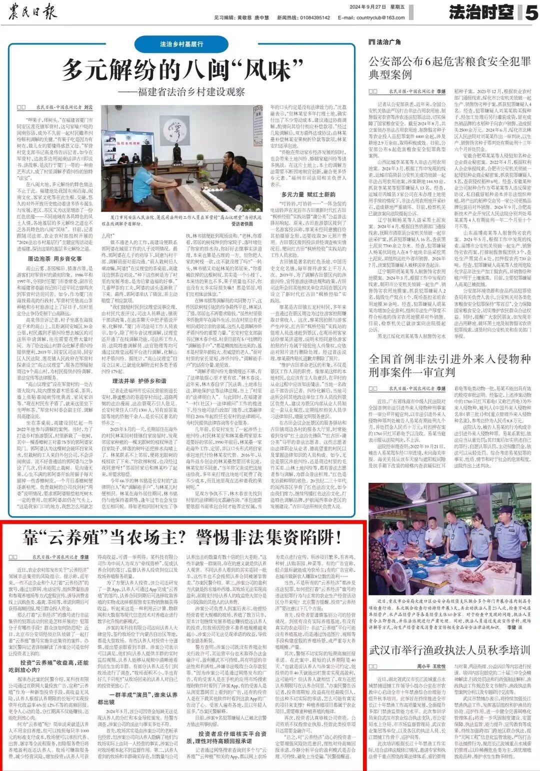 近日,北京市公安局经侦总队侦破了一起打着“云养殖”旗号实施非法集资的案件,《农民日报》对该案件进行了详细报道。