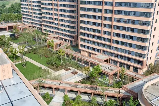 公寓内部的庭院景观也是打造完全贴合老人需求而设计的。内庭院景观从东到西分别为私密花园、休闲区和活动广场,形成一种从密到疏,从静到动的过渡。