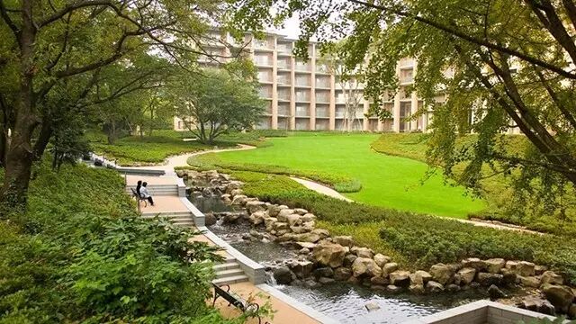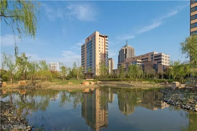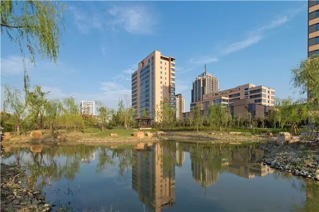 4、水景空间设计,水是灵动之源,在南区中庭中,设置一组鲤鱼池,为老人增添愉悦之感。而在北区花园中央,设计集垂钓、观赏等功能为一体的水池景观,配有组团绿化、岛屿、鱼和其他水生植物,让老人享受生态山水的诗意与野趣,使人心旷神怡。